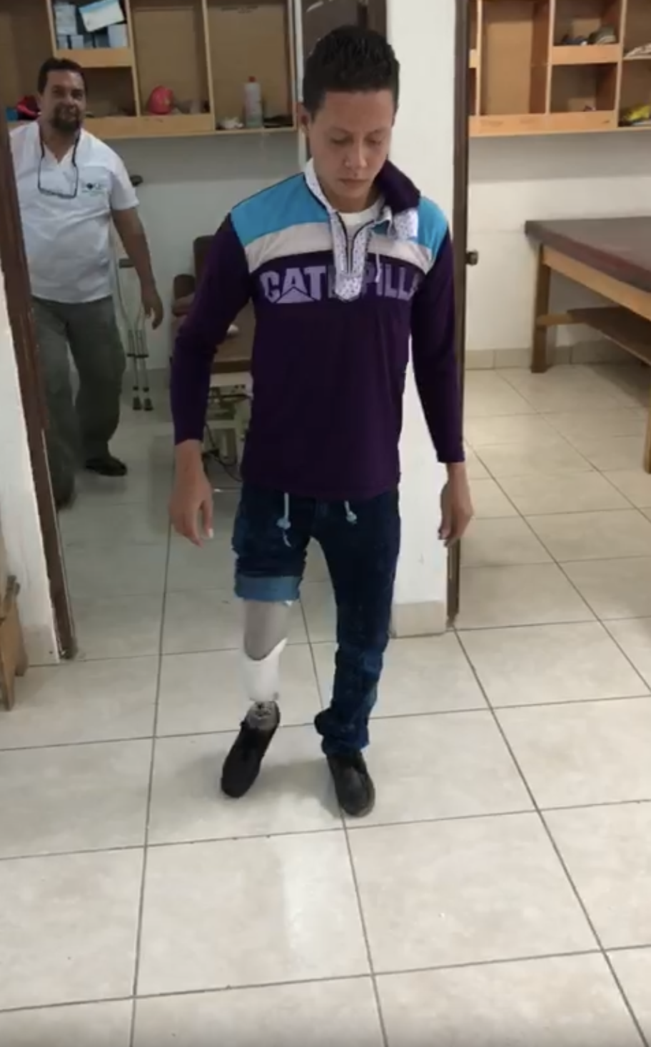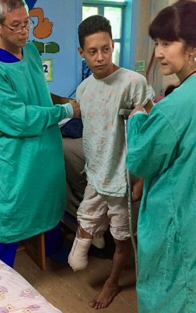FAKS Foundation coordinated with Operation Rainbow, Pro-Honduras and the Hospital Escuela in Tegucigalpa, Honduras to arrange for the amputation in early October 2018. Serious but confident that he had made the correct decision, Levin focuses on his first steps the day after surgery.